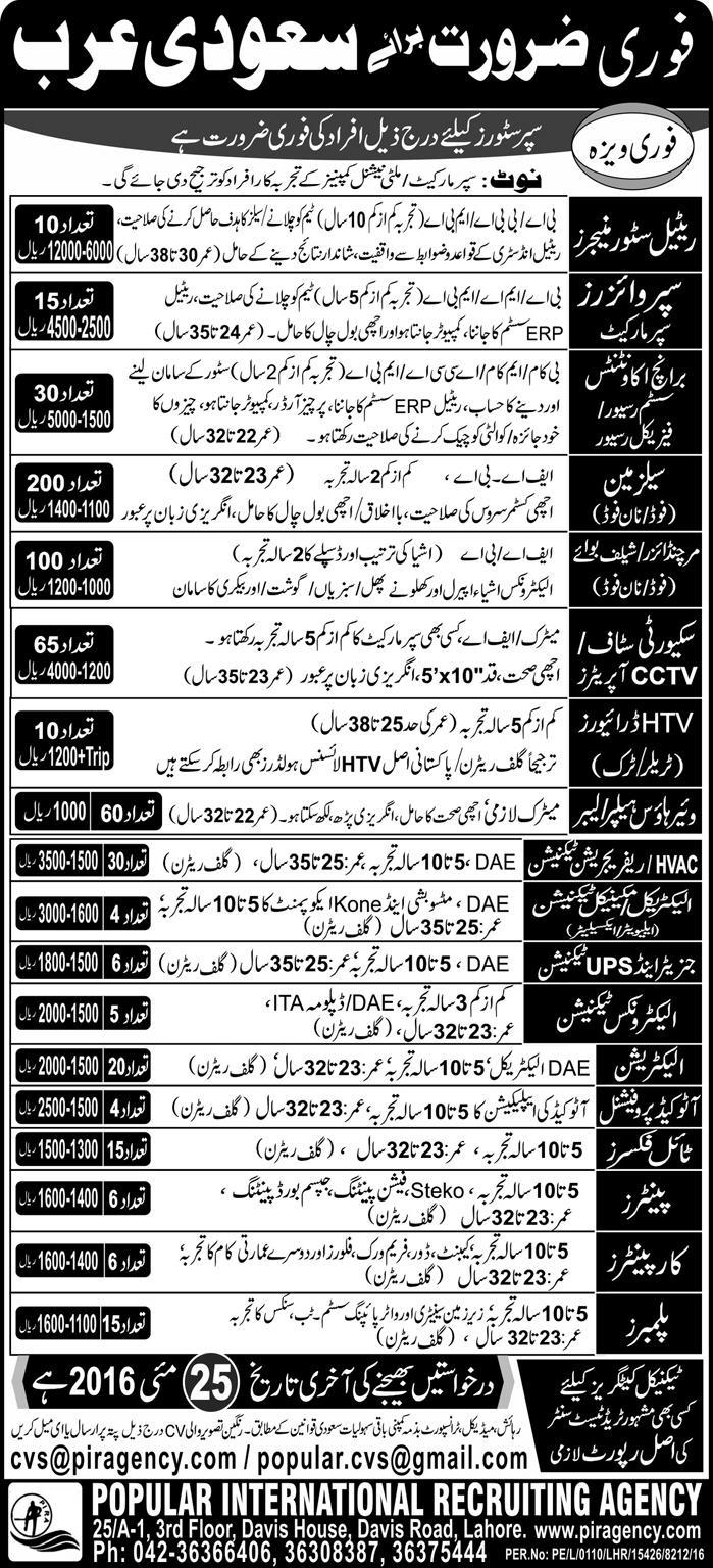 Jobs In Saudi Arabia For Pakistanis 2014 October Through Pak Arabian Manpower Services In Saudi Arabia Express On 21 Oct 2014 Jobs In Pakistan